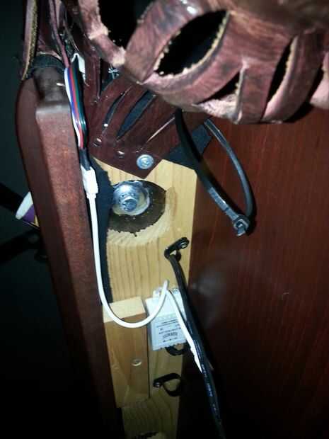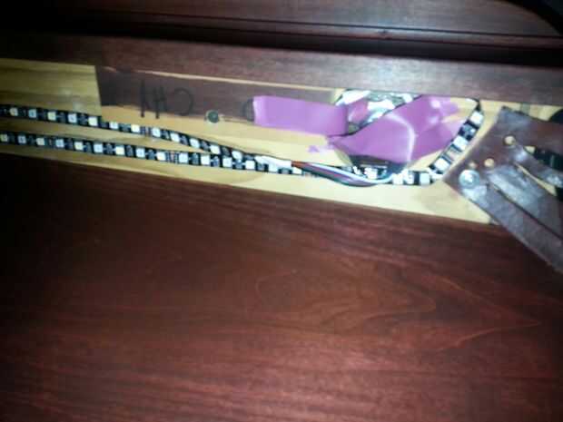 - La tira de LED de alimentación a través de este orificio siguiente de bolsillo y del bajo lateral, enrollar la tira alrededor del bolsillo y luego la alimentación por el otro lado del bolsillo en la parte superior de la tabla.