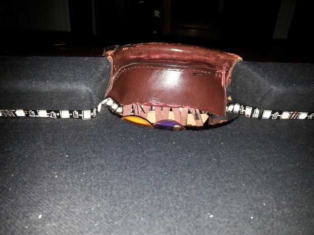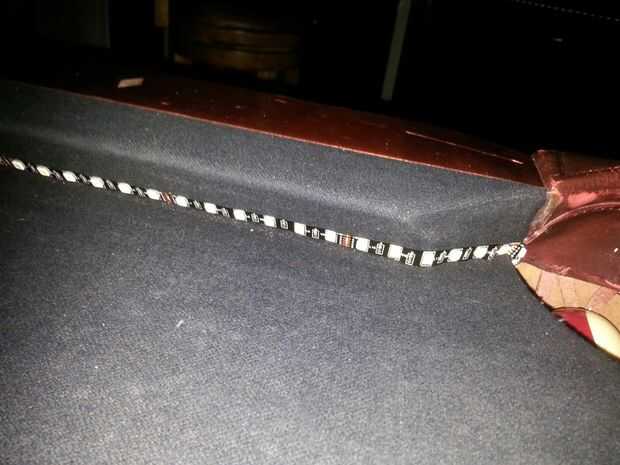 - Continuar pegando la tira de LED debajo del carril y a través de/en los bolsillos hasta que te quedas sin la tira de LED.