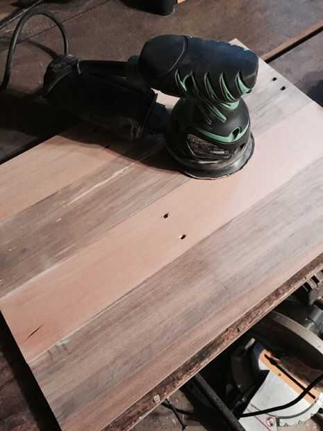 Usé grano 80 primero y luego 220. Sólo lija la parte superior porque me gusta dejar los espacios que no resistió y áspero. Así puede probar que se trataba de madera de palet.
