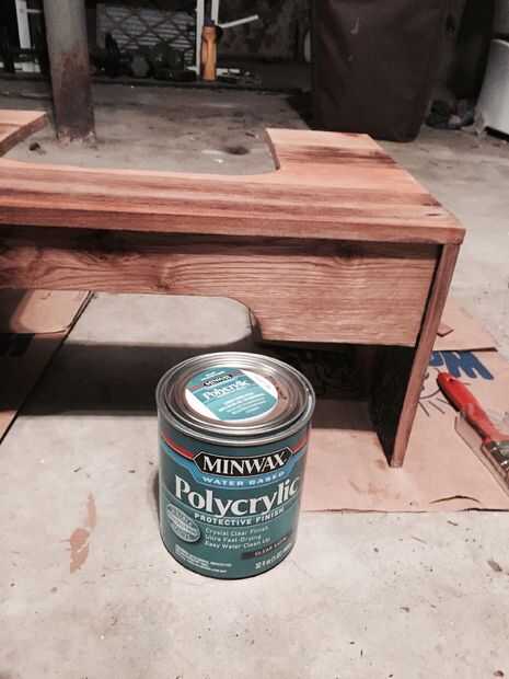 I lijadora el corte de los bordes por lo que sería cualquier astillas. Es el momento para el poli. Usé un poli raso a base de agua para ello. Aplicar con una brocha de barniz y dejar secar. Entonces después de que se seque ligeramente arena y repetición. Hice tres capas y resultó realmente agradable.