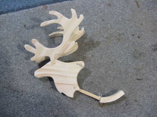 La parte de la cabeza, la pieza de empuje de caramelo conectada a él y todas las partes de sombra negras fueron cortadas de pino 3/4". La parte posterior de la cabeza, así como la pieza de empuje fueron enarenados ligeramente por lo que se solo un pelo menos de 3/4".