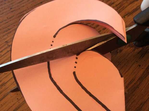 Cortar la curva superior y, a continuación, la parte recta de los otros 2 corazones. Asegúrese de dejar una pequeña parte del papel entre las partes superiores e inferiores del contorno. Doble en las líneas de pliegue, doblez hacia adelante y hacia atrás.