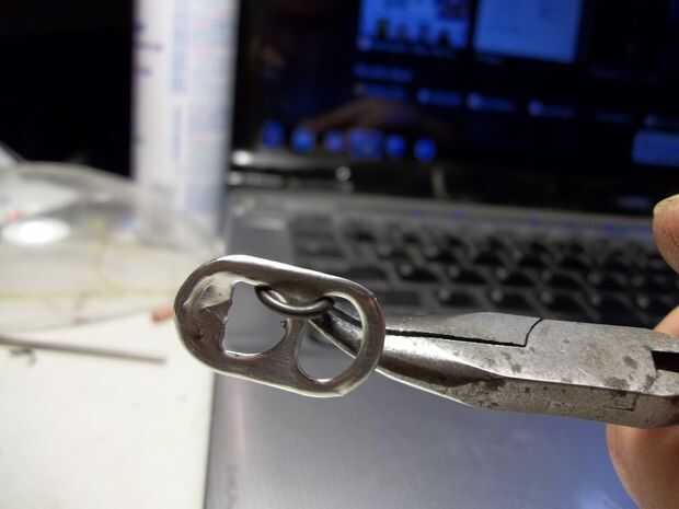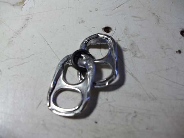 a continuación tomar un anillo y cadena que tiene la pestaña de la barra del medio. tomar otra ficha y ponerlo en el anillo detrás de la última pestaña, cerrar el anillo y colocar otra ficha a la primera de la misma manera.