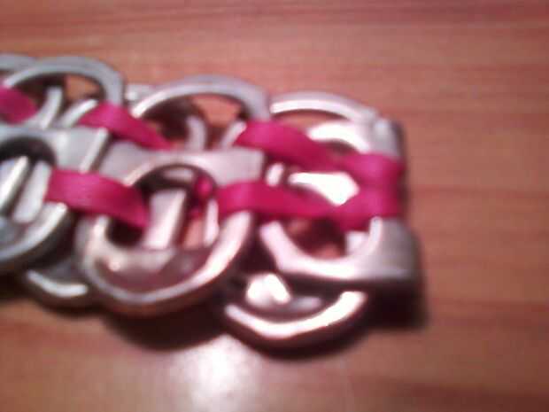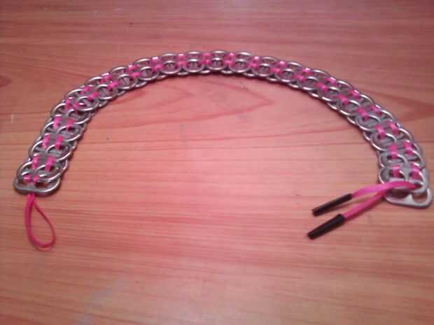Recientemente se ha extendido la necesidad de reciclar para el mundo de la moda. Un tema popular con eco-fashionista es una representación visual del uso de un elemento de materiales reciclados. Una vez que tal manera de hacer esto es mantener el producto reciclado en su forma original, por lo que es obvio el tema de la ropa se recicla. Algunos de la gama de artículos más popular de bolas de papel a bolsa bolsas pulseras ficha de pop. Durante la búsqueda pulseras ficha pop me topé con correas ficha pop que eran bastante maldito impresionantes, pero faltaba algo, algo que he traído a Instructables: una construcción como cerca de ser todas las pestañas como sea posible. Esto significa además del cable para mantener las pestañas juntas, no haya otros materiales necesarios.