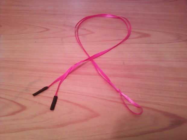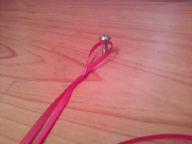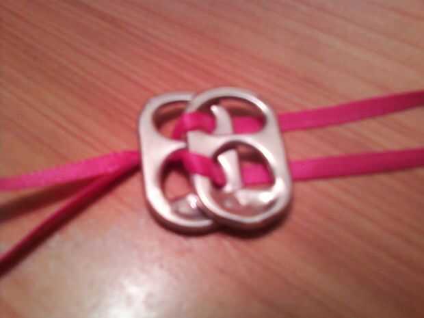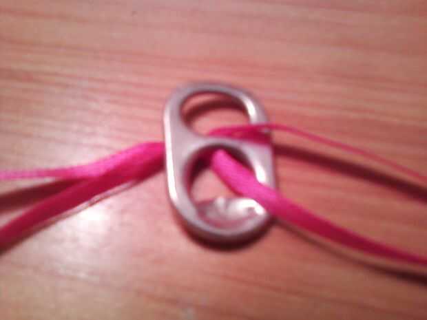 3. Deslice su primera pestaña con una cuerda pasando por la parte superior media y el otro por la parte inferior media, asegurándose de que el ciclo está en la parte inferior.