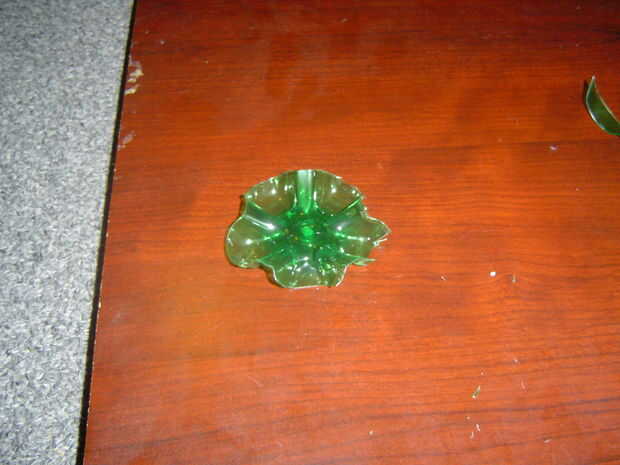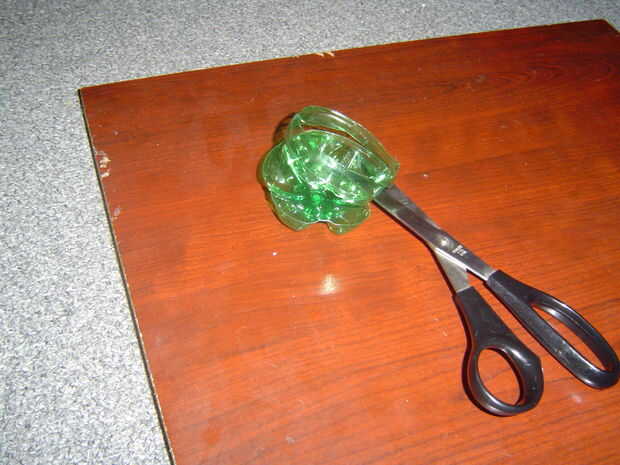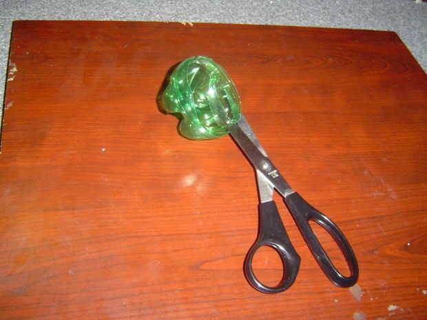 ahora con las tijeras debe cortar hacia la parte inferior. sin embargo sólo puede cortar en un punto (por eso se recomienda utilizar una botella de pop). en ese momento eres capaz de hacer algún ajuste