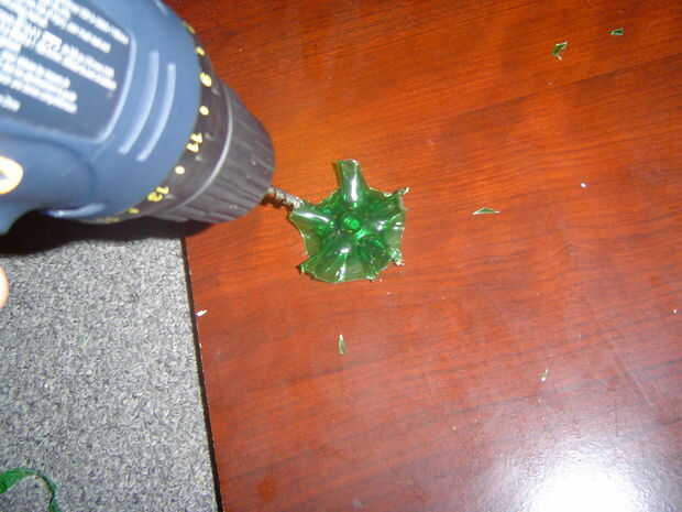 en cualquier parte de los bordes, perforar un agujero con la broca de 3/16. es el agujero que el alambre atravesará.