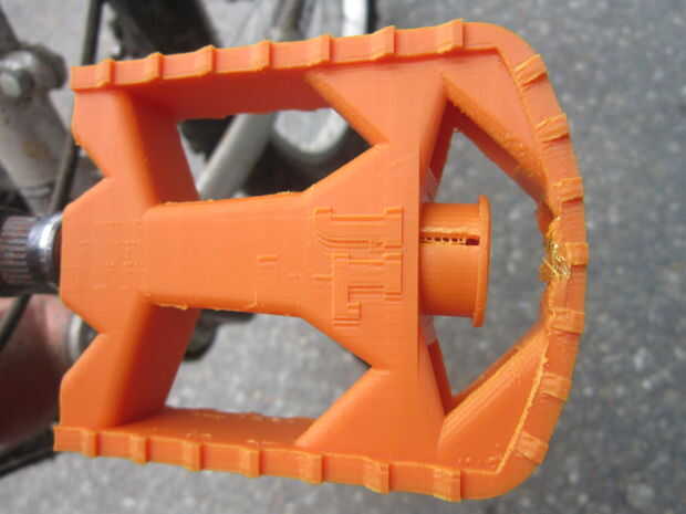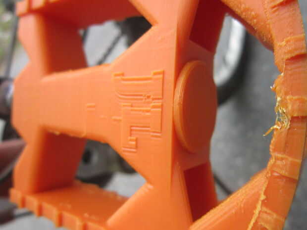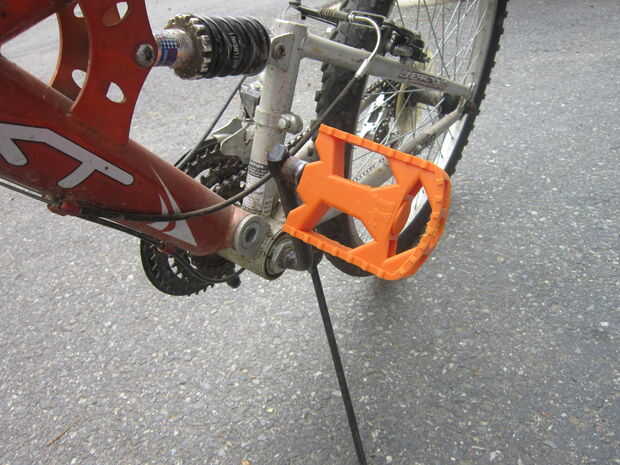 Después de la captura los dedos haga clic en detrás de la lavadora, simplemente introduzca la tapa pedal y presione firmemente en su lugar. Esta tapa más que cubrir el agujero, rechaza los dedos del retén en su posición original y mantiene apretado el pedal del cigüeñal. En la última foto, vemos una vista seccionada de pedal (naranja) y la tapa (azul) que lo demuestra. De esta manera, las funciones de la tapa como un candado para asegurar que el pedal se queda en su bicicleta.