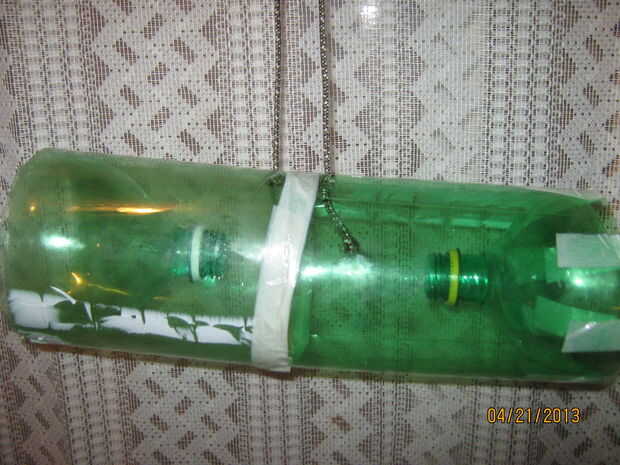 Lo primero en este paso es poner los centros al lado de uno con los agujeros que agujero perforado en el centro. Luego poner a un lado de la cuerda en un agujero y ATA un saber la cuerda no se deslice a través. Hacer lo mismo con el otro extremo de la cuerda por el otro agujero que perfora. Ahora poner la parte superior de las botellas en el interior hacia fuera en los extremos exteriores de las piezas del centro. se debe bastante Acomódesela en los extremos, si no, no freak sólo con cinta adhesiva en como lo hice con el lado derecho. Ahora el último paso, juntar los bordes de los pedazos de centro y cinta por la mitad. La trampa final no debe tener los agujeros en él excepto donde las tapas que solía ser. Para utilizar esto solo sumerja la trampa en un agujero poco profundo de agua con peces pequeños ya sea mantener o trampa y asegúrese de que llena con agua. Los peces deben nadar en y no ser capaces de averiguar cómo nadar hacia fuera. Espere y tire hacia afuera de la trampa para recuperar peces. Podría poner pequeños trozos de cebo dentro de antemano a sus posibilidades. Goodluck!