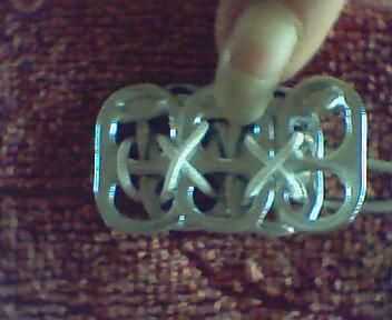 Otra pestaña, celebrada en la parte superior, los cables de hilo de rosca con la formación de ese agujero de cordón inferior de X. superior, agujero inferior de la cuerda superior.