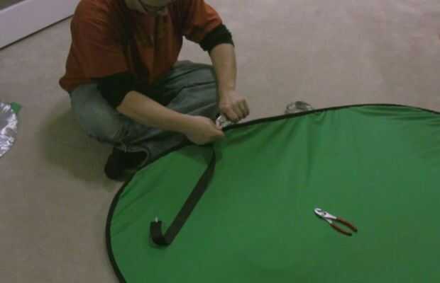 A continuación utilice el alambre del lazo (usted puede conseguir lejos con ataduras aquí no lo sé pero puede ser vale la pena intentarlo) para unir los dos extremos del pez cinta una vez que tienes el paño enseñó pero no enseñó eso él patata chips el reflector o chroma key. Si amarrar con 2 o tres secciones de lazo la cinta no se resbale (al menos hasta ahora para mí). Tenga en cuenta que una cosa es que parece el tamaño máximo para este tipo de cosas es sobre 5' x 3' después de que consiguen bastante flojo.