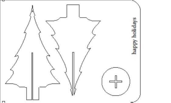 Agregar texto a la tarjeta y asegúrese de que el perfil del árbol tiene un pequeño descanso, para asegurar que el árbol ligeramente es conectado a la tarjeta para que no caiga solo hacia fuera cuando usted corte laserlo.