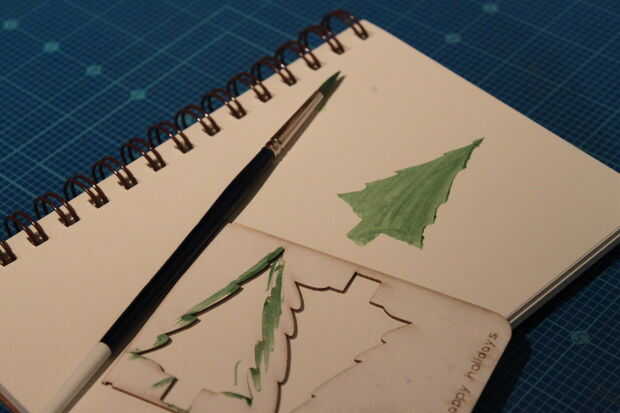 Sus receptores de la tarjeta pueden utilizar las sobras del paso 5 para crear sus propias tarjetas de Navidad. Estas ramas de árboles hacen greate plantillas para uso con pintura o marcadores.