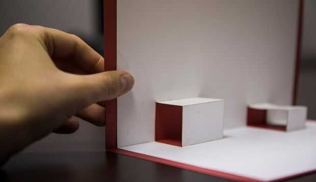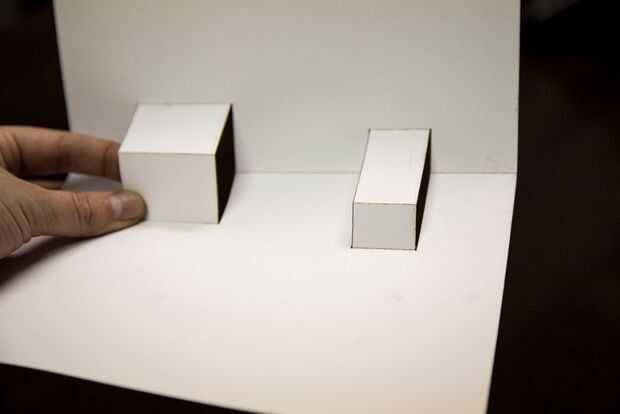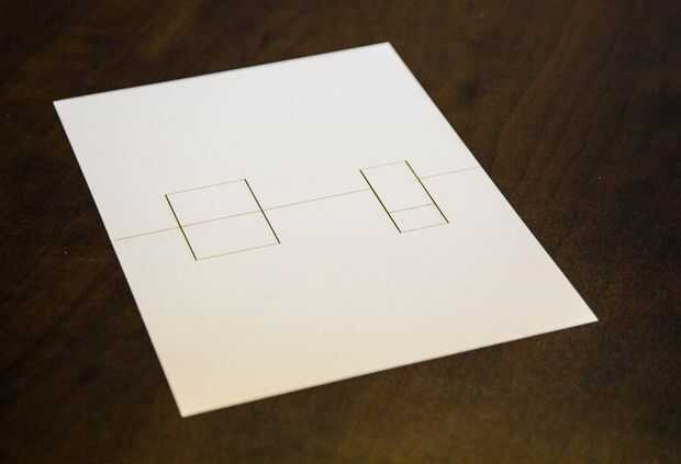 Doble a lo largo de las líneas para que su tarjeta está arrugada por el centro. Doblar las ranuras extras en la dirección opuesta para producir dos cuadros 3D.