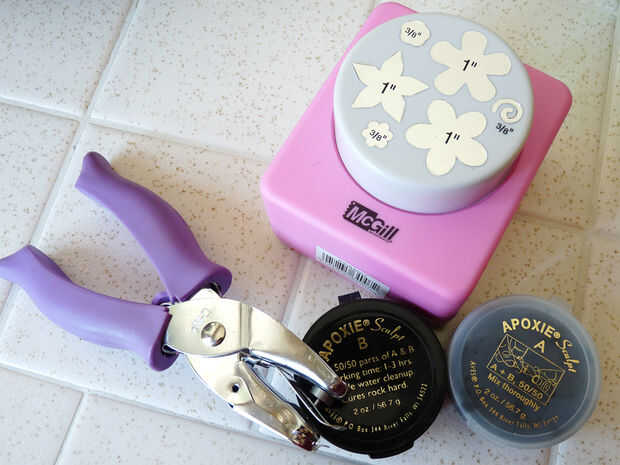 Un golpe de arte con flores. Flor muere debe ser aproximadamente.5 - 1.5 pulgadas. Puede utilizar un punzón con múltiples formas como yo lo hice o utilizar golpes de forma única.