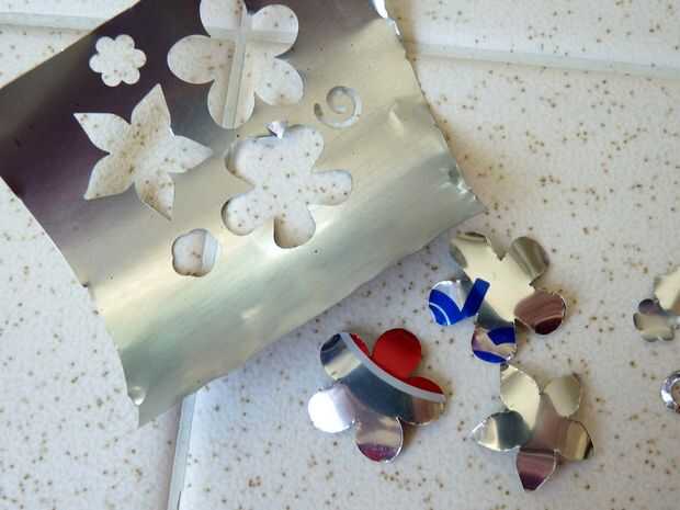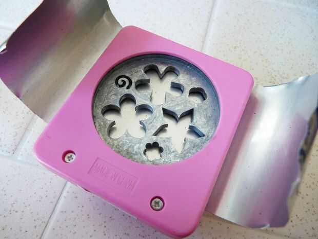 Poner la hoja de metal en la punch(es) de flores y perforar las formas. Puede que necesite un poco más presión que con el papel del arte, pero no demasiado. Hacer 3-6 piezas de la flor dependiendo de cómo completo desea los pétalos.