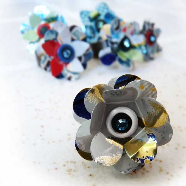Cuando hayas terminado que forma, su anillo es listo para usar. Usted puede hacer tantos estilos como metal y golpes. Puede tratar de diferentes números de pétalos y puede combinaciones, centros de flor diferentes y colores diferentes de epoxy.