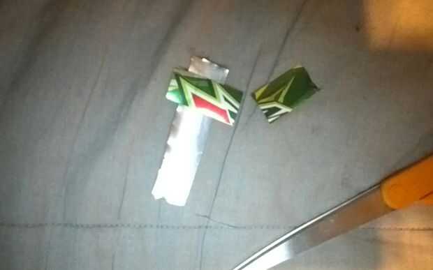 tomar una de las tiras y coloque encima de otro, luego recortar los lados sobresale por lo que apenas sobresale.