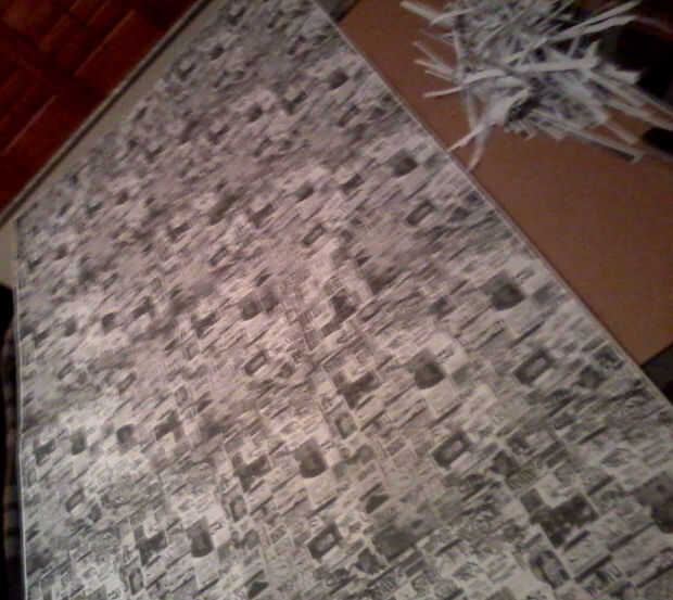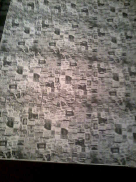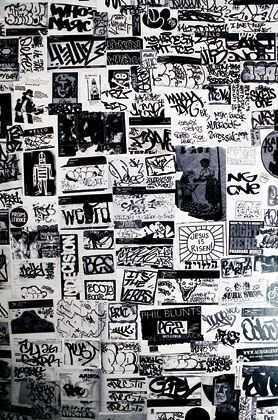 Para crear el graffiti, yo busqué en Google graffiti y arte encontró la mirada iba. La primera imagen de este paso es lo que gustaba. Copiar la imagen en papel 11 x 17 en blanco y negro, recortar los bordes y engrapadas en el cartón. Dependiendo de su tamaño final de la pared, habrá calcular cuántas hojas se necesita.