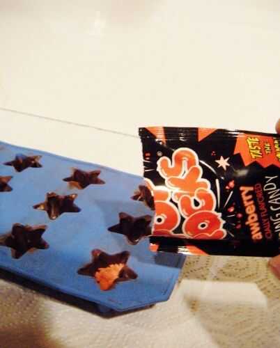 Abrir un paquete de pop rocks y llenar cada chocolate cáscara aproximadamente 2/3 de la manera para arriba con el caramelo.