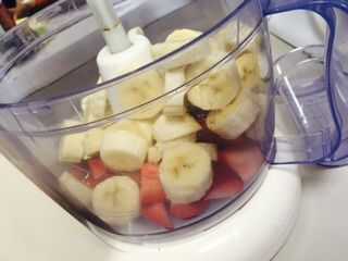 Una vez cortada la fruta puesta en el procesador de alimentos y licue a baja.