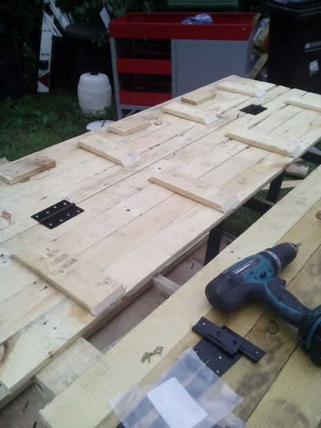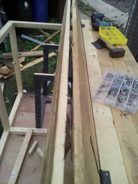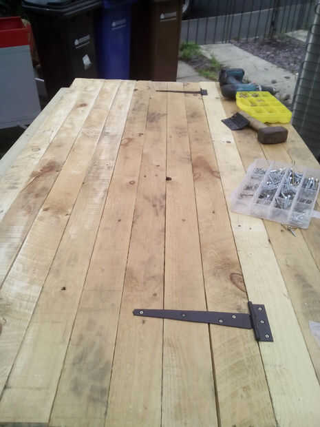 Para la parte superior que deconstruye una plataforma extra larga, que luego estos fijo juntos en tres secciones con battons debajo y pegamento de madera. el frente (cara al cliente) era adjuntas a la mitad con hindges la vertiente anterior y la mitad a la parte trasera con puerta hindges debajo para crear un pliegue de 3 vías para actuar como un cliente frente a.