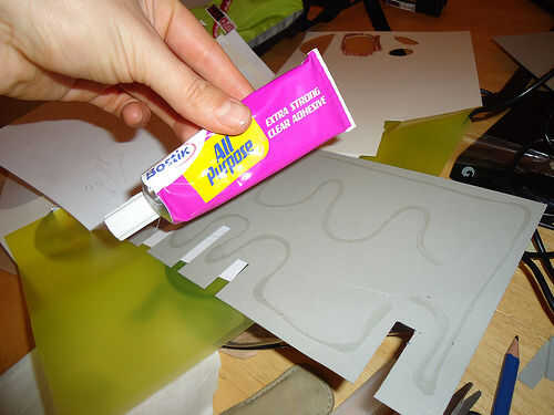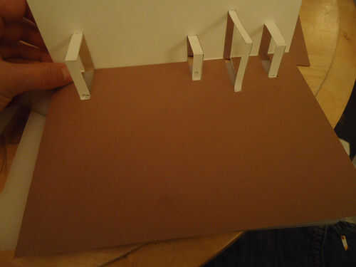 Compruebe que la tarjeta se desliza fácilmente sobre la tarjeta base, permitiendo que los stands para moverse libremente. Cuando es el caso, pegamento en su lugar. Tenga cuidado de pegar los dos colores a los lados derecho, por lo que los soportes estén alineados correctamente.