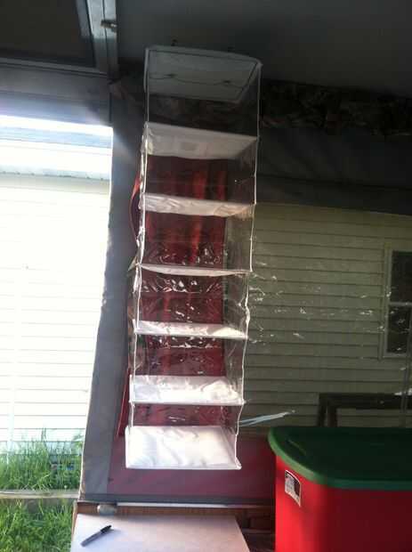 Ahora simplemente colgar los estantes y rellenar con lo que quieras. No haré una tonelada de peso pero tendrá materia de alimento, ropa y otras cosas de misc.