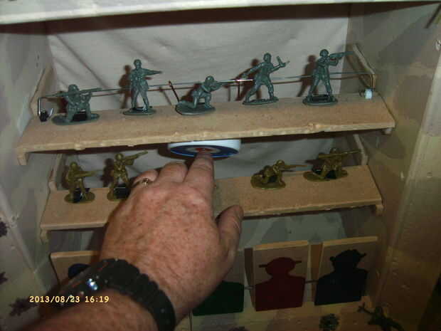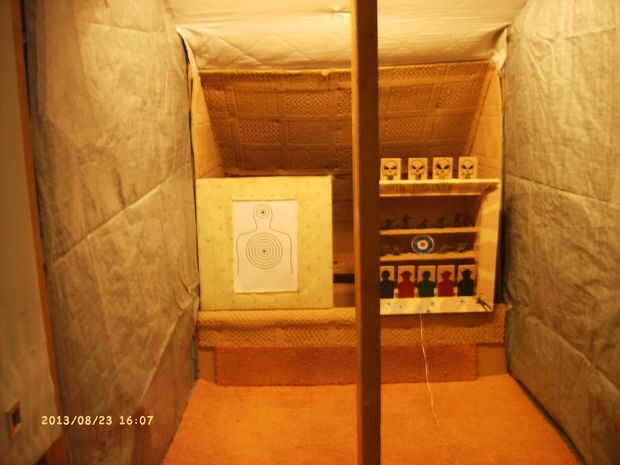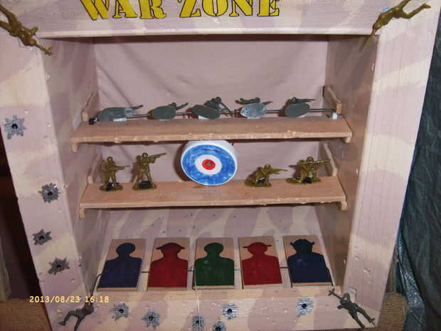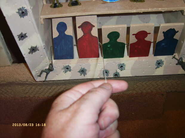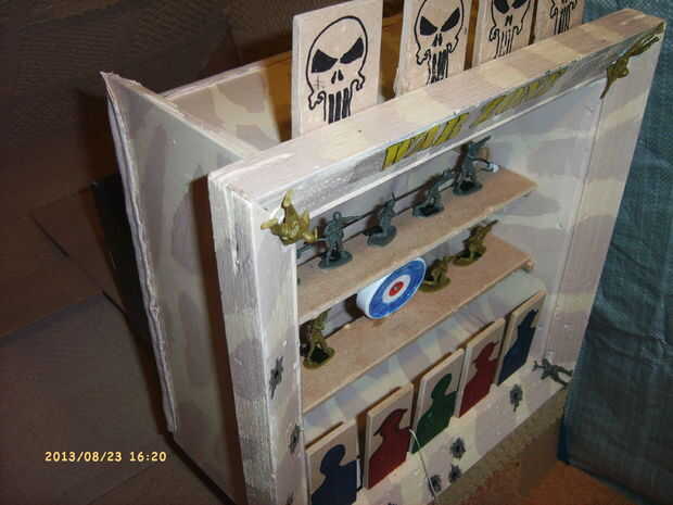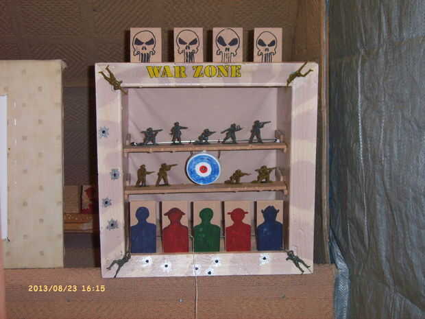 después de semanas buscando en la web, tuve que hacer mi propia solución a lo que es más probable un problema infrecuente.Problema: Cómo hacer una Diana con dardos de pie que puede ser utilizado como un blanco de pistola de airsoft.Otro problema: her