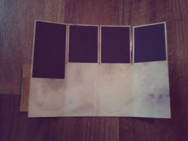 Pegamento en sus 4 rectángulos más grandes - poniendo el mayor de los 4 al lado del borde de la aleta
