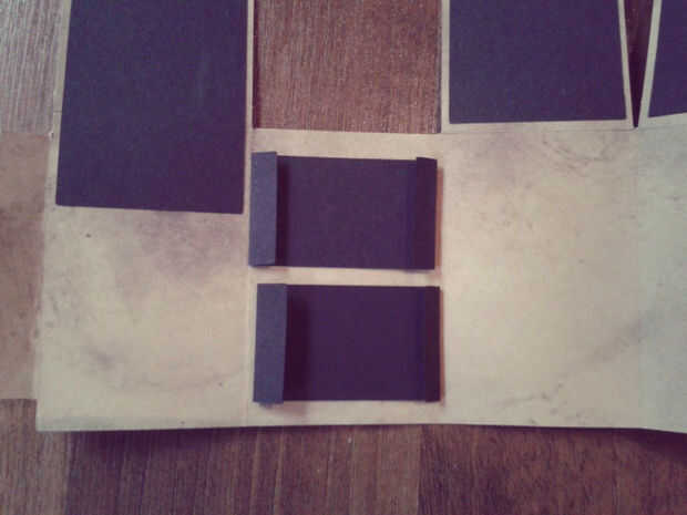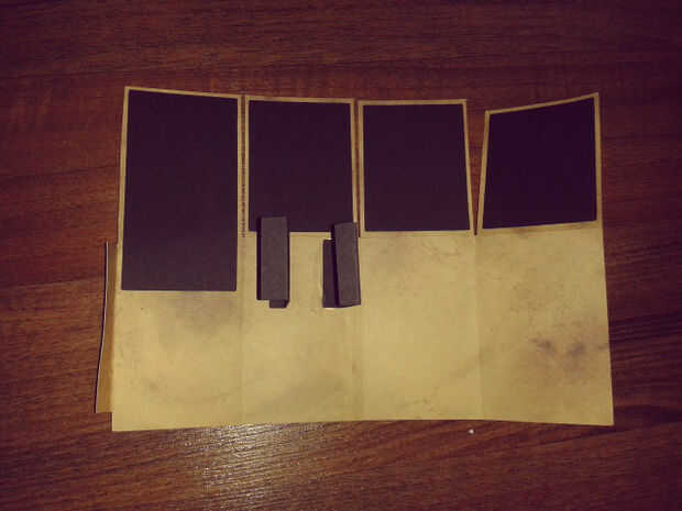 Toma los dos rectángulos más pequeños y doble ambos extremos para que quepa dentro de uno de las cuatro secciones de la tarjeta