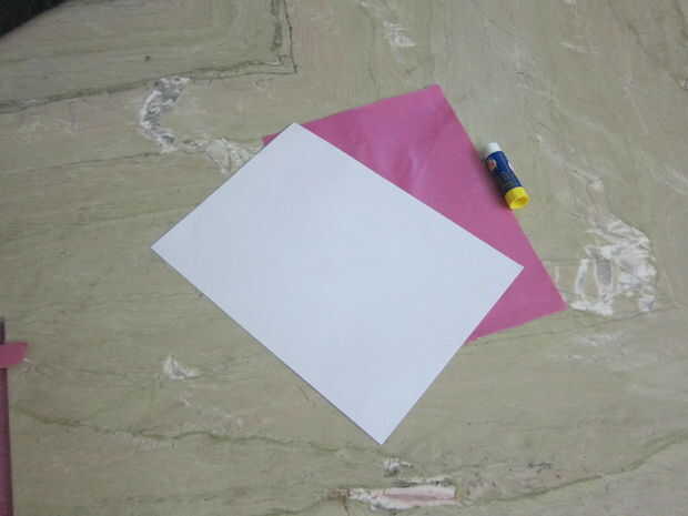 Nuestro primer paso es crear el pop-up card, para hacer esto... primero tienes que tomar una hoja normal o un papel de color A4 hoja y palillo a él (puede usar palillo del pegamento para que no hará papel parecen torpes). Después de pegarse lo dividen en siete piezas (cada uno se comporte como un pétalo de una flor) que vamos a hacer en los siguientes pasos.
