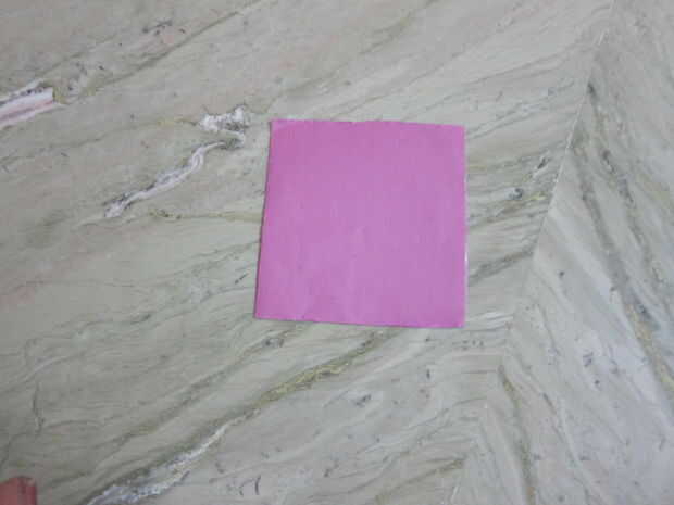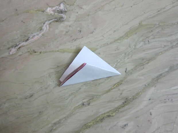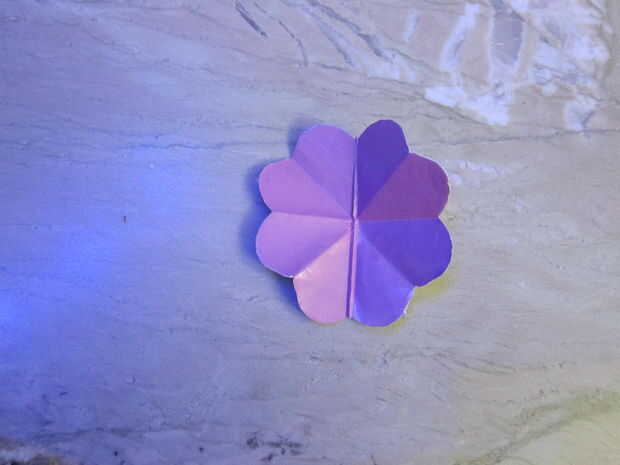 Entonces tienes doble mitad y doble triángulo. Cortar cualquier forma que desee para la flor... Tener cuidado que tienes que cortar en la forma que el centro del papel hacia adentro... Entonces, de manera similar, tienes que hacer todas las siete flores de la pop-up tarjeta.