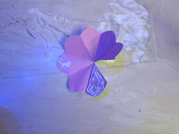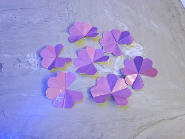 en primer lugar tomar una de esas flores que nos dieron en el paso anterior. Entonces cuidadosamente corte sólo un pétalo 1 imagen muestra luego corta un pétalo de todas las flores de siete... Tomar las flores y tienes que pegar un pétalo por otro en cada flor.