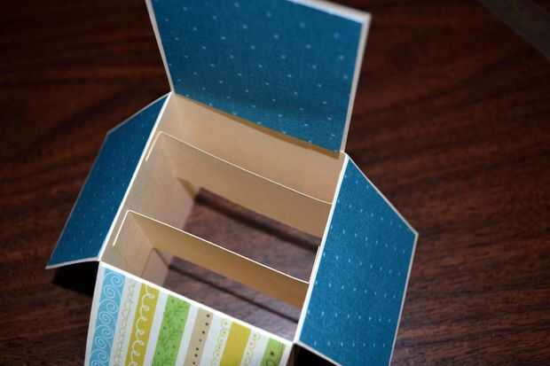 ambos lados en 1/2" para que te quedan con la dimensión media en 2-5/8" (que es la dimensión de un lado de la caja). Doble en las líneas de puntuación en la dirección opuesta para que usted obtenga un pliegue 'Z'.