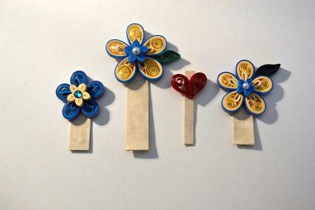 Monte todas las flores tubulares en tiras de cartulina marfil.