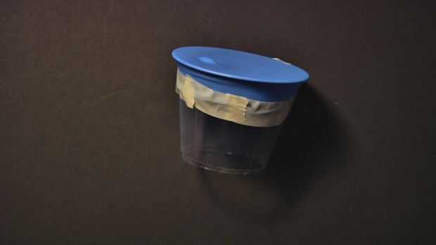 Cortar la boquilla del globo dejando sólo la parte del bulbo. Estirar el globo sobre la boca de una de las copas. Puede ayudar a que alguien sostenga la taza. Asegúrese de que está en estrecha – no debe ser cualquier hoyuelos en el globo. Con cinta adhesiva el globo a la taza.