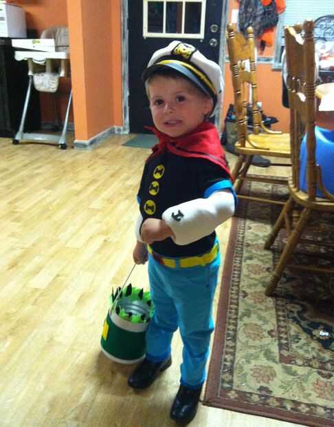 (* he encontrado un par de pantalones de niñas azul pequeño en la rejilla de separación en Walmart por $2 para los pantalones. La camisa es un negro liso de manga larga camiseta de Walmart.)