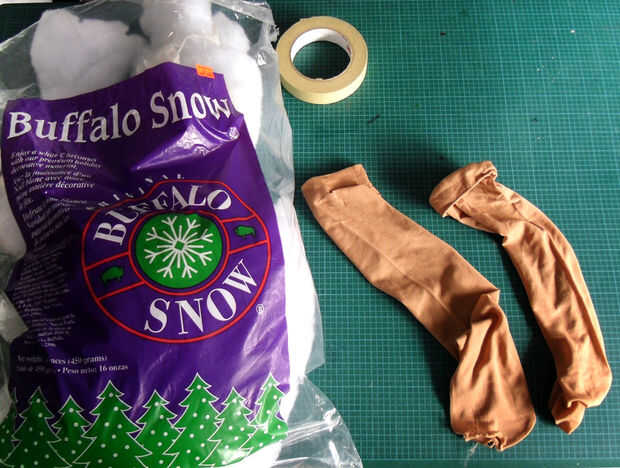 he podido hacer mis brazos de Popeye de unos pares de medias de mujer y un bateo de almohada. Antebrazos con bateo de envolver y sujetar en su lugar con cinta de enmascarar.
