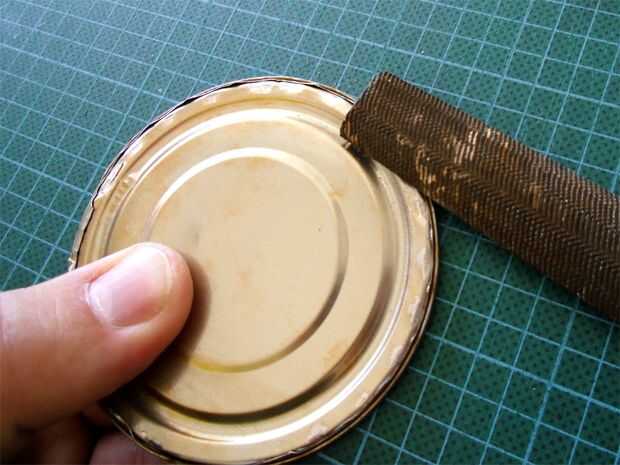 Una vez abierto, suavizar bordes afilados ni rebabas en la parte superior de la lata con una lima de metal.