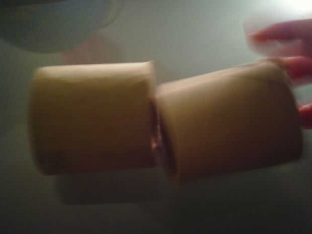- Los rollos de cartón al lado del otro sobre el papel de la cinta. Luego poner cinta de palillo doble o enrolladas trozos de cinta en los rodillos. Esto es para que los rollos se peguen al papel cuando se ruede para arriba.