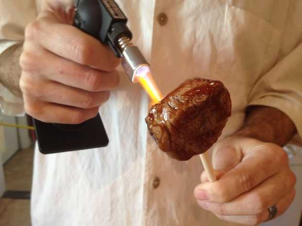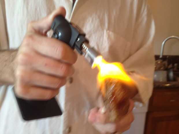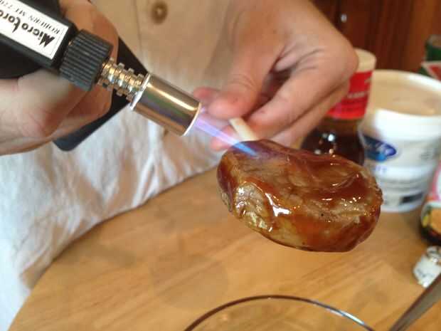 Utilice sus antorcha de mano y empezar a hacer esas burbujas brûlée y hueles una barbacoa instantánea. No es broma. Fue muy divertido y olía genial, probado increíble. Me encanta esas motas de negro allí, la antorcha realmente lo lleva a otro nivel.