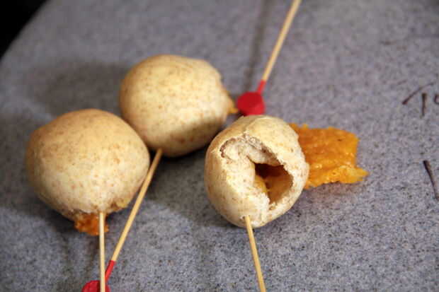 A la plancha dos veces cocido al horno patatas dulces con canela pan relleno de Bacon