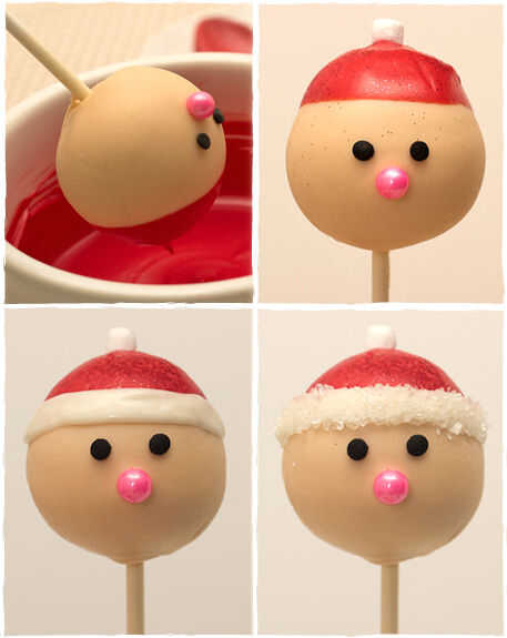 Fusión que se derrite el caramelo rojo. Voltee cada cake pop y sumergir en la capa para cubrir la mitad de la distancia entre la parte superior del pop y los ojos de Santa Claus. Si quieres que tus estallidos de torta Santa tener sombreros brillantes (más brillo = más monas!), con cuidado espolvorear polvo disco rojo sobre la capa mojada. Coloque un poco de melcocha en la cima del pop cake para hacer la bola en el sombrero de Santa. Deje que la capa roja endurecen luego limpie cualquier exceso disco de polvo con un pincel limpio y seco.