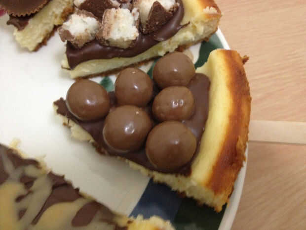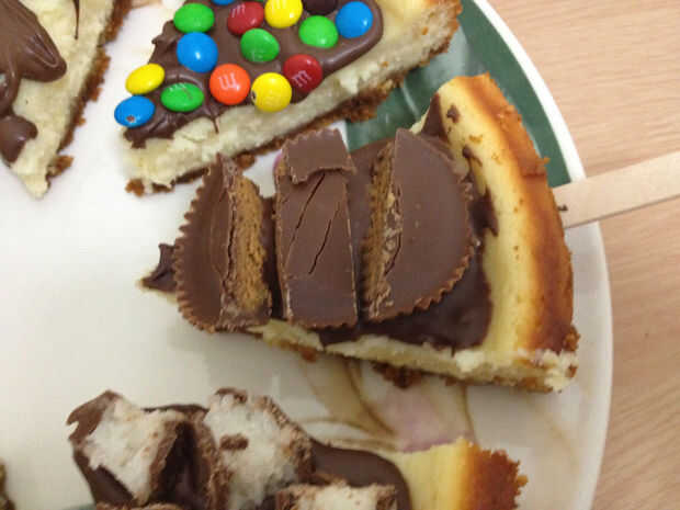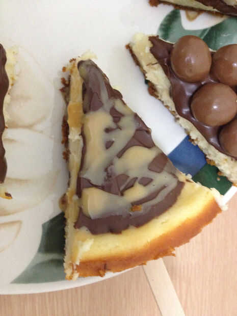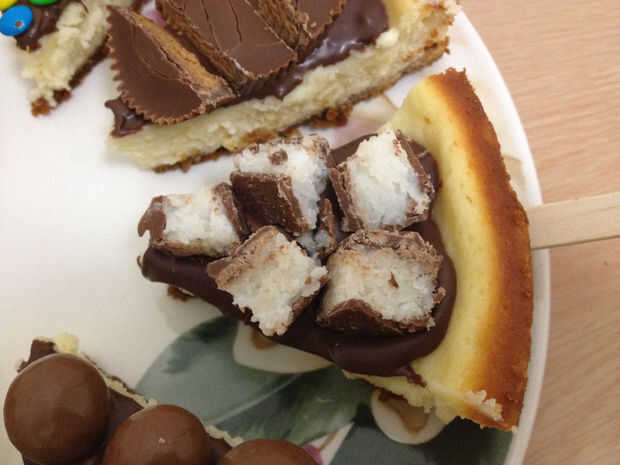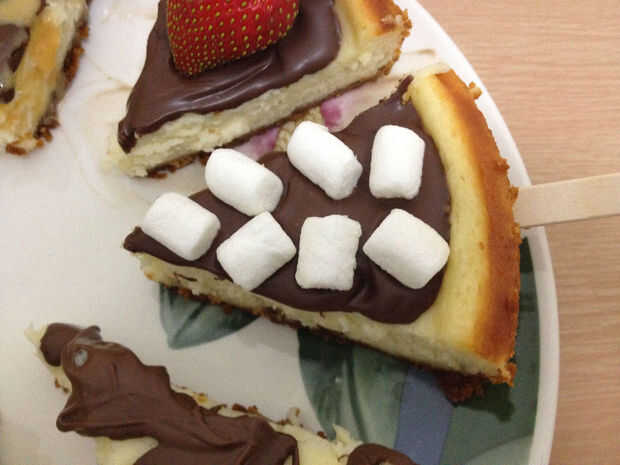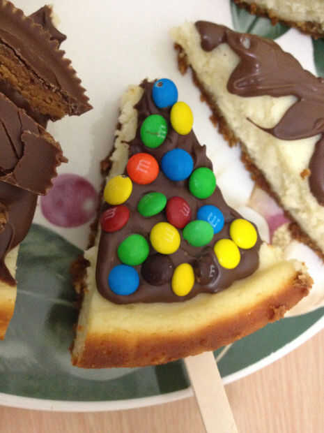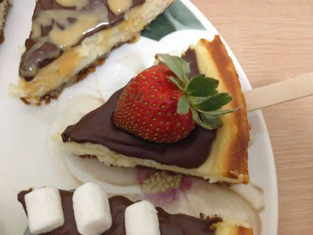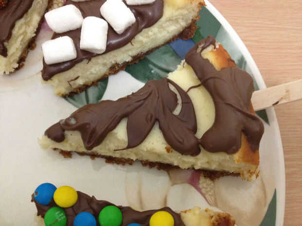 Verter sobre rebanadas de tarta de queso con una cuchara y encima con lo que quieras
