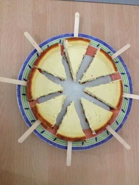 Corte el pastel en 8 porciones y palillo en palito en cada rebanada (se muestra en la imagen)