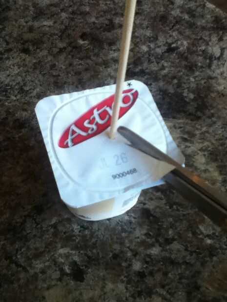 Después de la congelación, corte una abertura en la parte superior y retire el resto.