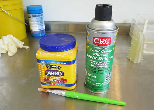 Preparé dos alimentos grado silicona molde liberación y maíz almidón. Ambos fallaron desgraciadamente (bueno no es el fin del mundo), pero yo recomendaría vaselina y cera desmoldante.