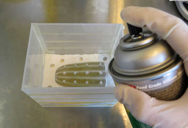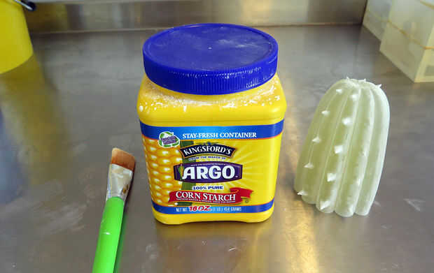 Primero cepille un poco de almidón de maíz a la superficie del original para que no pegue a la arcilla. (Almidón de maíz y molde de silicón en spray soltar ambos trabajos para este propósito)