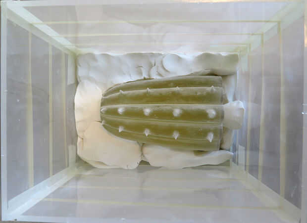 Preparar una caja de moldeo (no necesita ser elegante, aquí es las hojas de acrílico cortado a láser). Iniciar colocación de arcilla en la parte inferior de la caja, coloque el original en, garantizar la arcilla para vertedor y mantener poner arcilla hasta obtener una superficie lisa a lo largo de la línea de partición. Por último, aplicar desmoldante.